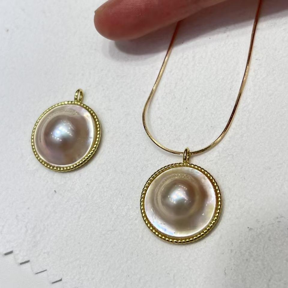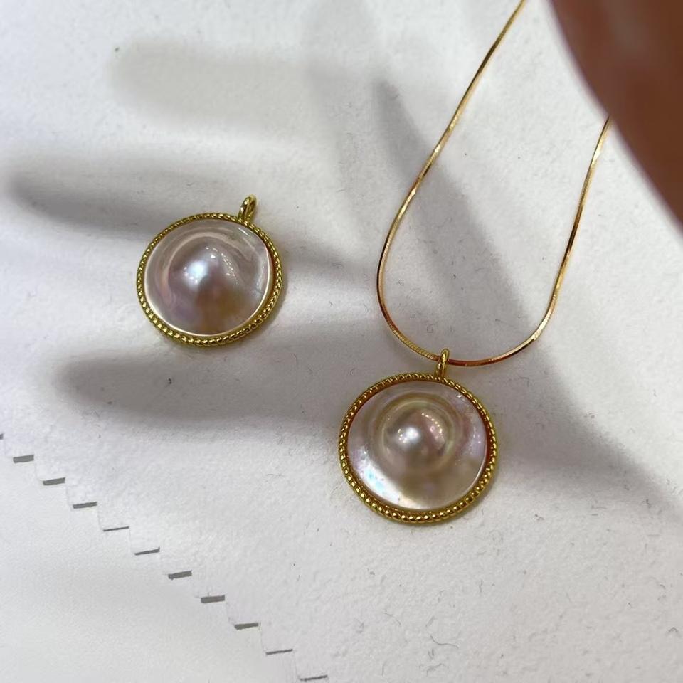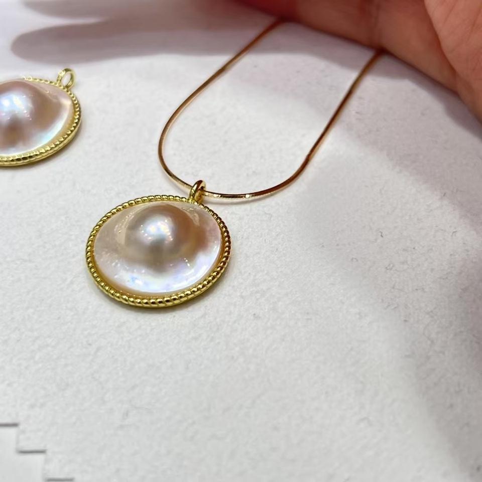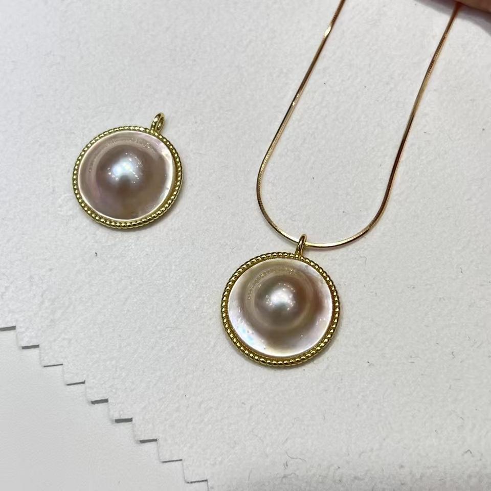 จี้ไข่มุกน้ำจืดทรงกลมฮันนี่ซัคเคิล 20 มม. กรอบลูกปัดทอง ดีไซน์คลาสสิกสำหรับผู้หญิง