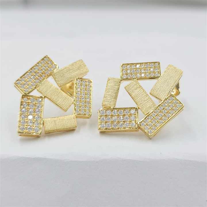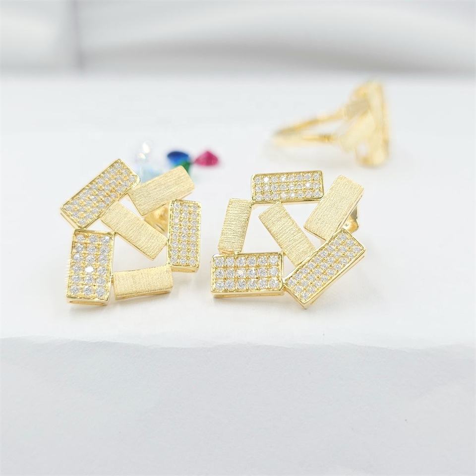 ต่างหูเงินแท้ 925 รูปทรงพีระมิดจากฮ่องกง ชุบทอง 18K ประดับเพชรซิร์คอน ของขวัญสุดฮิตสำหรับผู้หญิง ชุดเครื่องประดับคุณภาพสูง