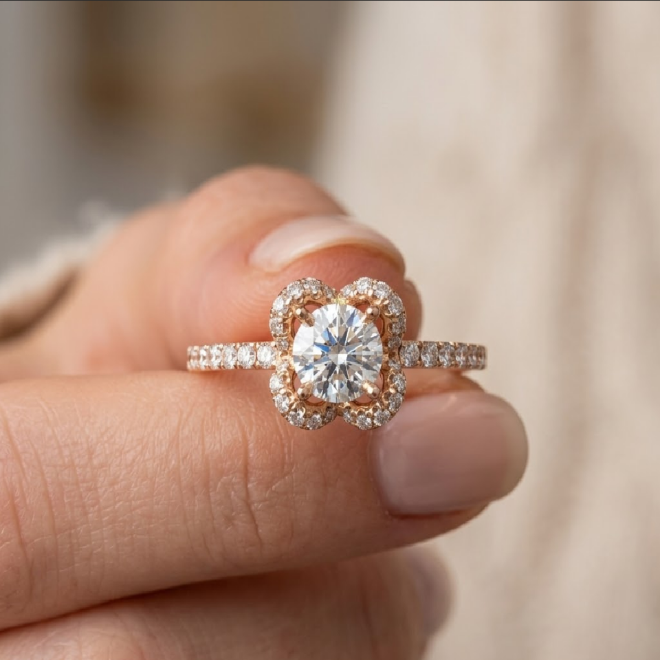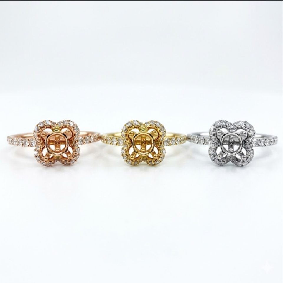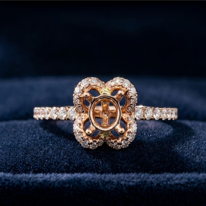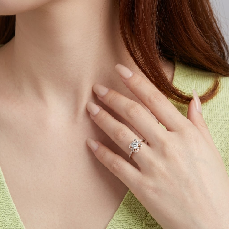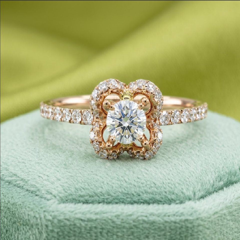 แหวนหมั้นแหวนเพชรแท้18K สีโรสโกลด์0.33cts ทรงครึ่งวงกลมสำหรับผู้หญิงจัดส่งจากฮ่องกง