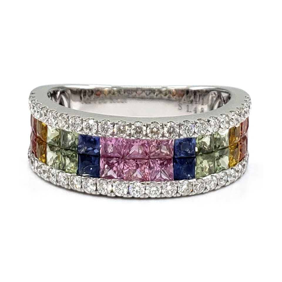 แหวนสีรุ้งประดับเพชรแท้สีทองขาวแท้18K สำหรับผู้หญิงจัดส่งจากฮ่องกง