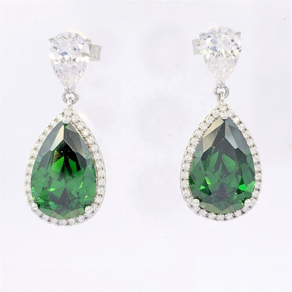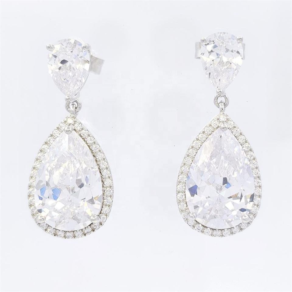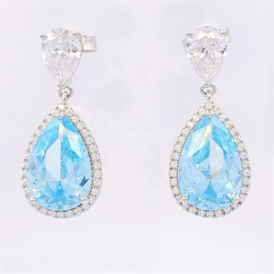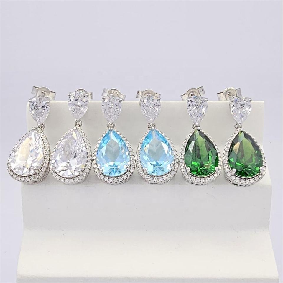 ต่างหูห้อยชุบ925เงินหรูหราสง่างามฮ่องกงสำหรับผู้หญิงดีไซน์เรขาคณิตทันสมัยพร้อมของขวัญหินหลักเพทาย