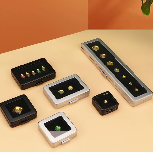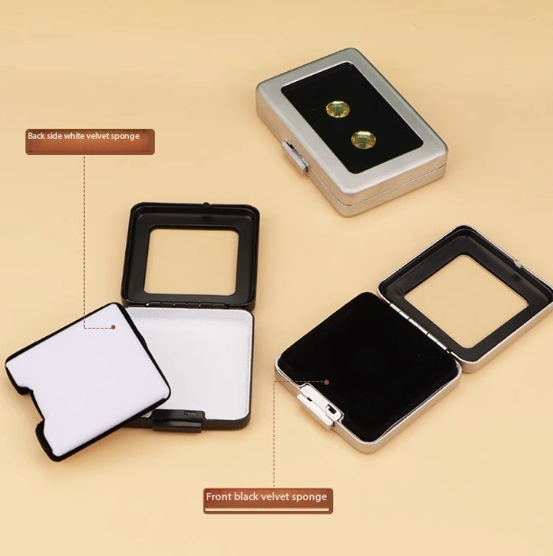 กล่องโชว์อัญมณีสีใสสไตล์ฮ่องกงกล่องเก็บเครื่องประดับแก้วสแตนเลสกล่องเก็บเครื่องประดับแหวนใบหน้าอุปกรณ์เสริมแบบหลวม