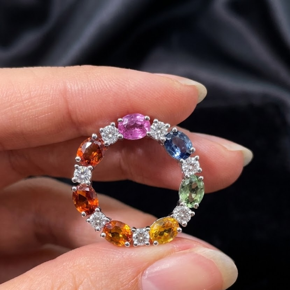 จี้แซฟไฟร์สีทองสีขาวล้วน18K สไตล์วินเทจสำหรับผู้หญิงจากผู้จำหน่ายฮ่องกง