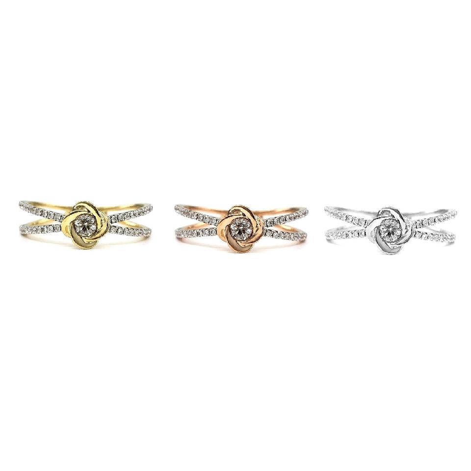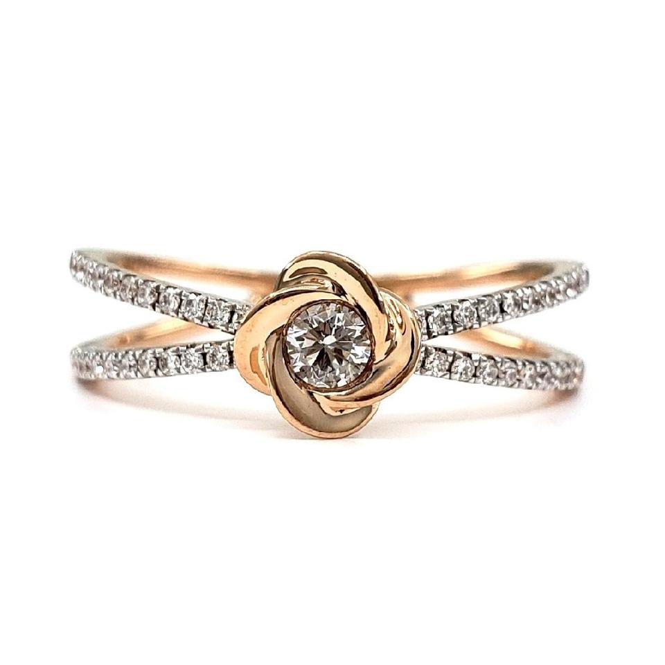 ฮ่องกงขายส่งPaveการตั้งค่าคุณภาพสูง18พันSolid Rose Goldเพชรแท้หมั้นแหวนแต่งงานสําหรับผู้หญิง