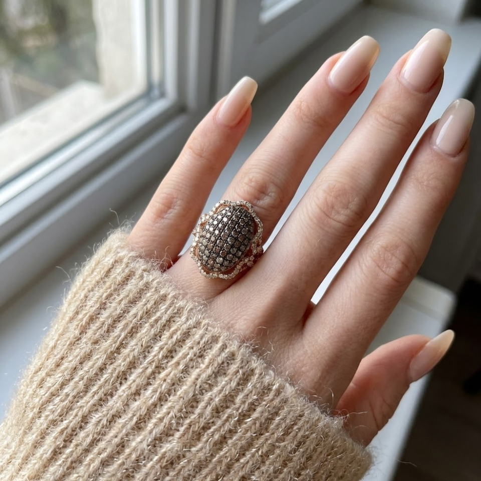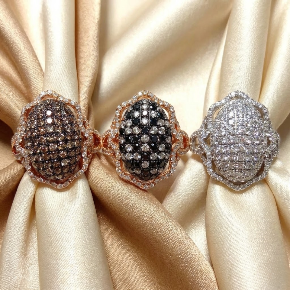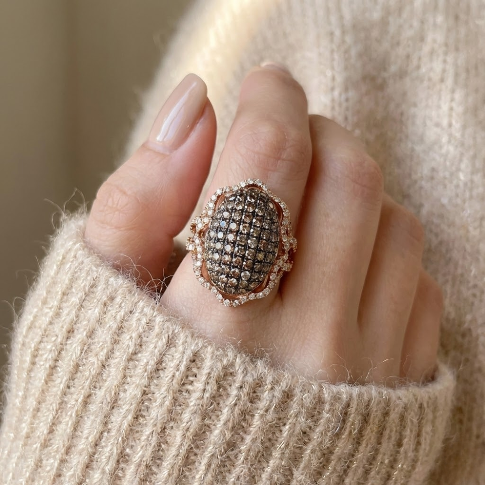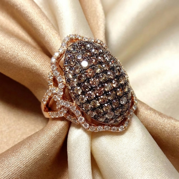 แหวนเพชร 18k สีน้ำตาลและสีขาว