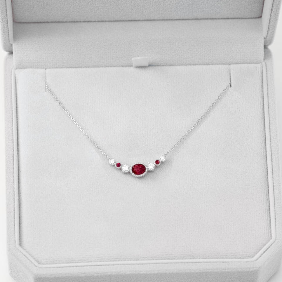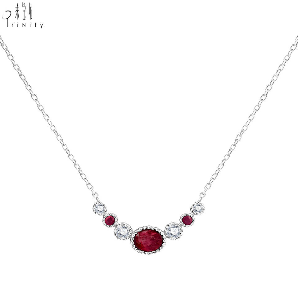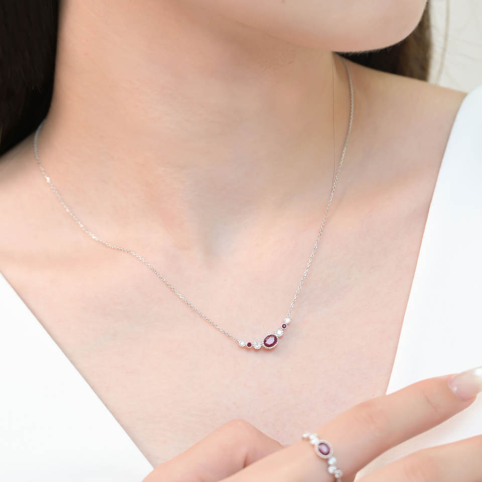 ซัพพลายเออร์ฮ่องกง ดีไซน์ย้อนยุคสุดพิเศษ ทองคำขาวแท้ 18K ประดับทับทิมสีแดงสดธรรมชาติและเพชร สร้อยคอจี้ ของขวัญสำหรับสุภาพสตรี
