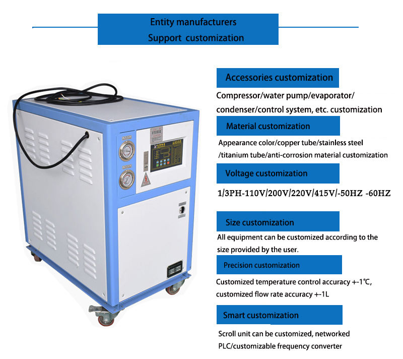 เครื่องทำความเย็น Hongsai HS-05A พร้อมคอมเพรสเซอร์ Sanyo คอนเดนเซอร์ อีวาพอเรเตอร์ และปั๊ม-3.75 กิโลวัตต์ 380/415 โวลต์ 50/60 เฮิรตซ์ 5-25 ผลผลิตสูง