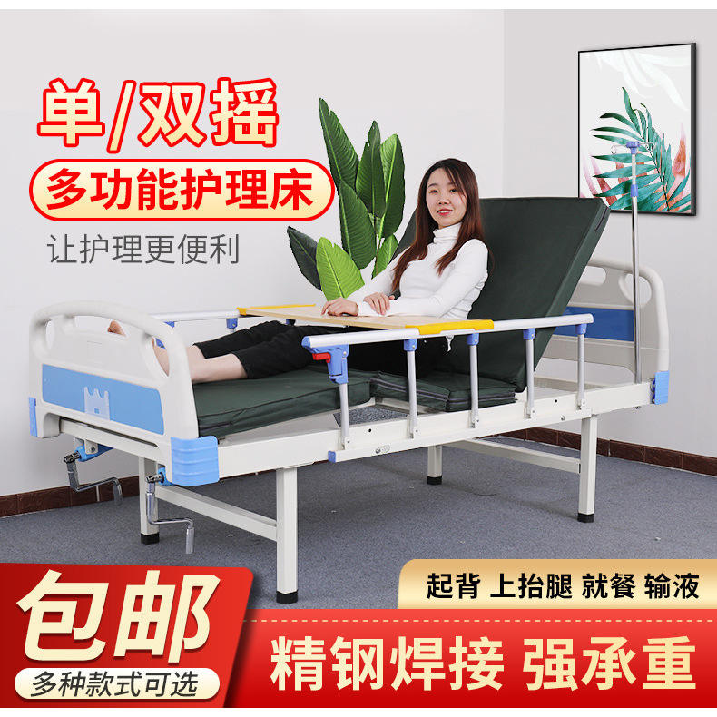 เตียงพยาบาลแบบปรับได้ Hongtong ขนาด 2 ม. x 90 ซม. โครงเหล็กเชื่อม ท่อเหล็กแผ่นรีดเย็น สำหรับใช้ในบ้านและโรงพยาบาล