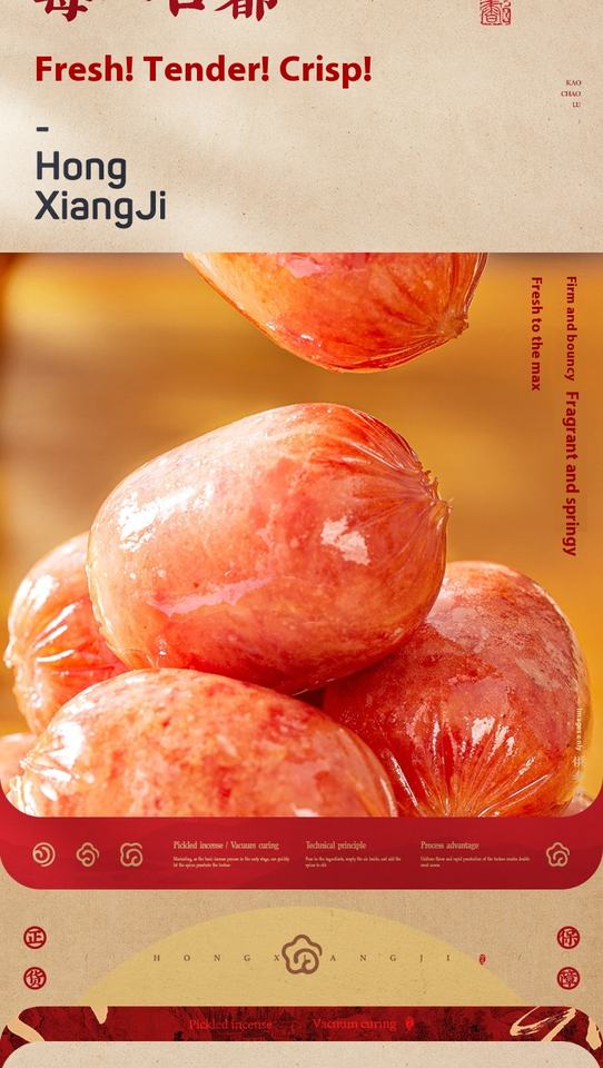 Hongxiangji Corn Hot Dog Sausage Salty Semi-Soft Low-Fat 135g Meat Snacks Bag Ready to Eat