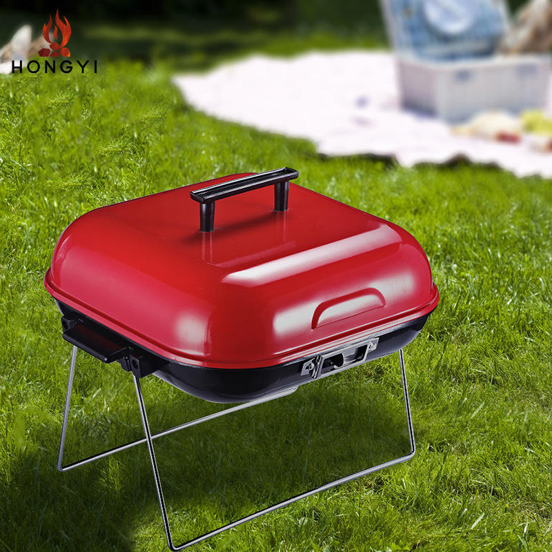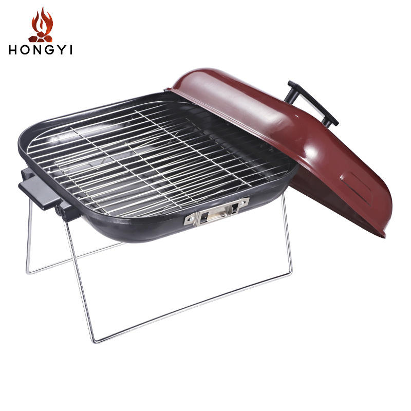 เตาถ่านพกพา Hongyi ขนาด 14 นิ้ว แบบพับได้ สำหรับตั้งแคมป์ปิ้งกลางแจ้ง พร้อมฝาปิด