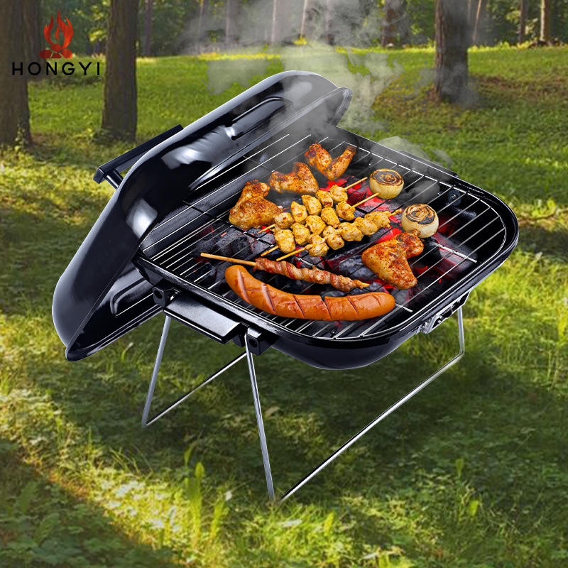 เตาถ่านตั้งโต๊ะขนาดเล็ก Hongyi แบบพกพา พับได้ สำหรับตั้งแคมป์ปิ้งกลางแจ้ง พร้อมฝาปิด สำหรับย่างเนื้อเสียบไม้และไส้กรอก