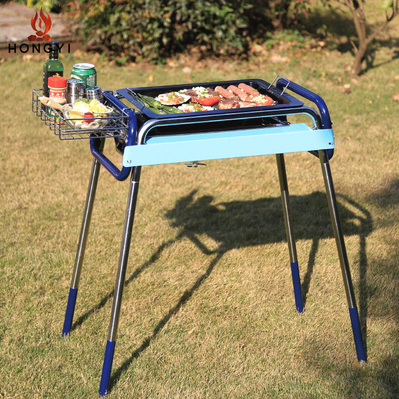 เตาถ่านพกพา Hongyi ขนาด 71x43x71.5 ซม. เตาบาร์บีคิวพับได้สำหรับใช้งานกลางแจ้ง พร้อมชั้นวางด้านข้างสำหรับปิกนิก