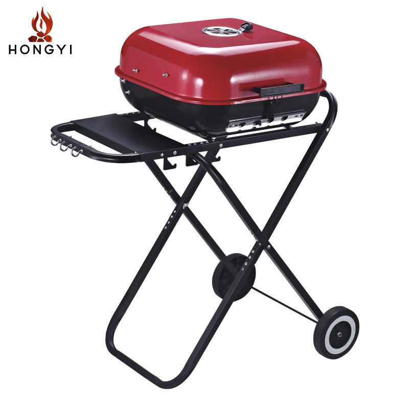 เตาปิ้งย่างพับได้แบบพกพา Hongyi ขนาด 70x49x90 ซม. อเนกประสงค์สำหรับกิจกรรมกลางแจ้ง พร้อมล้อและชั้นวางด้านข้าง