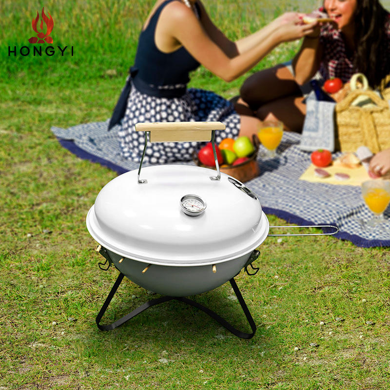 เตาบาร์บีคิวพกพาทรงกลมขนาดเล็ก Hongyi ทำจากสแตนเลส พร้อมเทอร์โมมิเตอร์ ใช้ถ่าน เหมาะสำหรับใช้งานกลางแจ้ง สำหรับ 3-5 คน