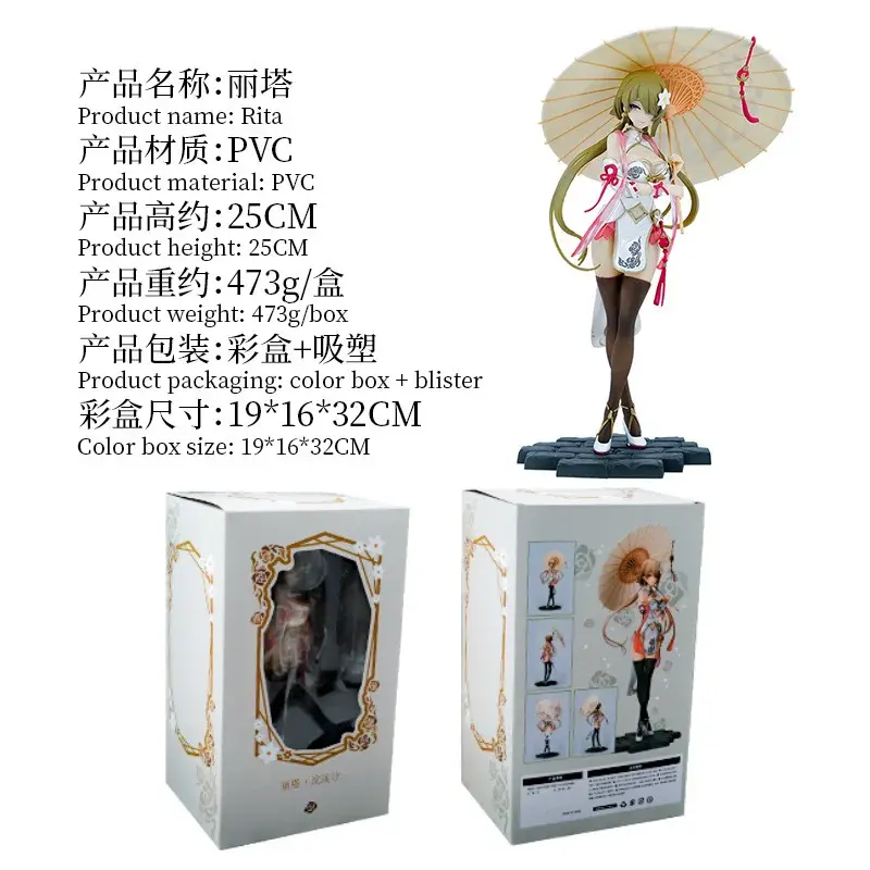 Honkai impact 3 Rita rosse Huanxisha รูปกี่เพ้า25ซม. ตุ๊กตาแอ็คชั่นผ้าไหมสีดำเซ็กซี่โมเดลของเล่นอะนิเมะ