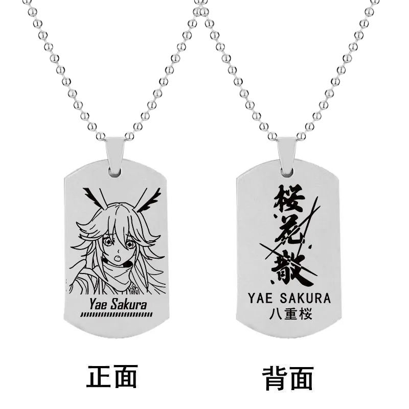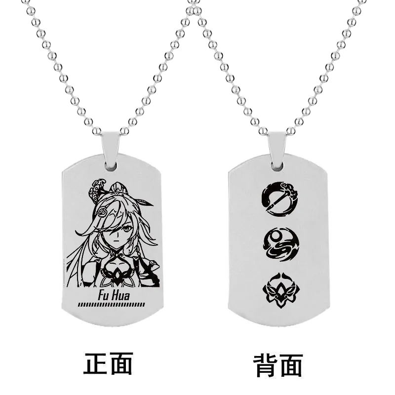 Honkai สร้อยคอสแตนเลส3แฉกสำหรับผู้หญิง,สร้อยคอจี้แท็กสุนัขพิมพ์เลเซอร์สองด้านเทรนด์สีเงินของขวัญ
