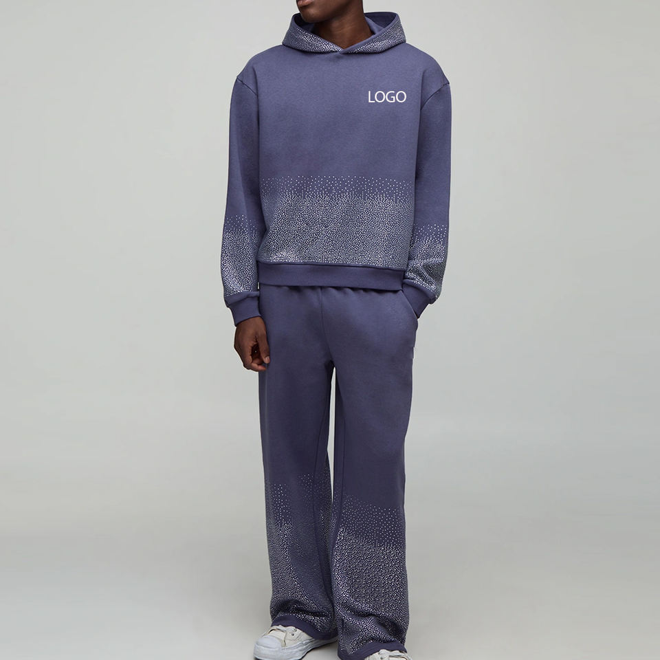 ชุดวอร์มผู้ชายดีไซน์ฮู้ดทันสมัย ประดับด้วยหินเทียม งานประณีต สีพื้น สำหรับฤดูหนาว ราคาถูกสำหรับการสั่งซื้อจำนวนมาก บริการ OEM