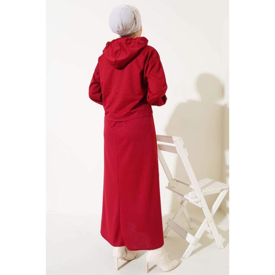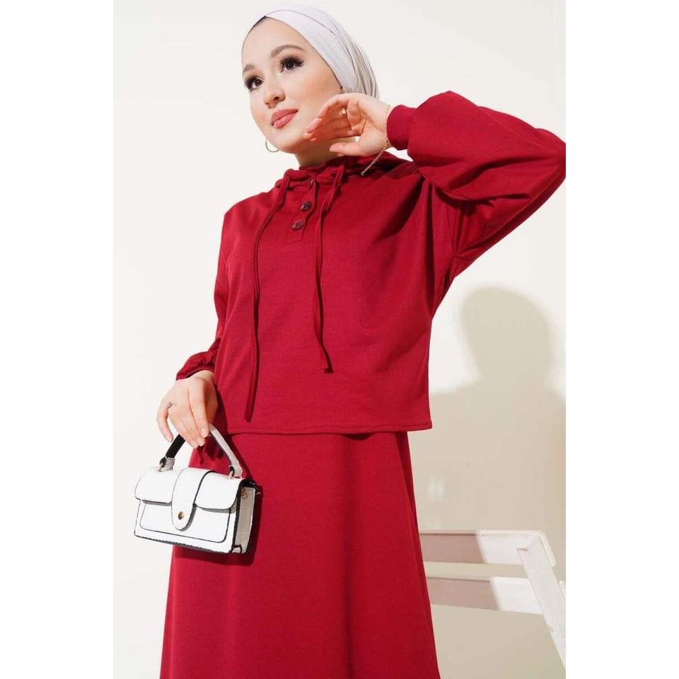 ชุดเดรสมีฮู้ดชุด2ชิ้นสีแดงม่วง