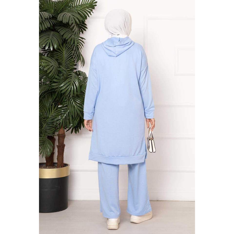 ชุดวอร์มผ้าสองชั้นมีฮู้ดลายตราสัญลักษณ์ สีน้ำเงิน