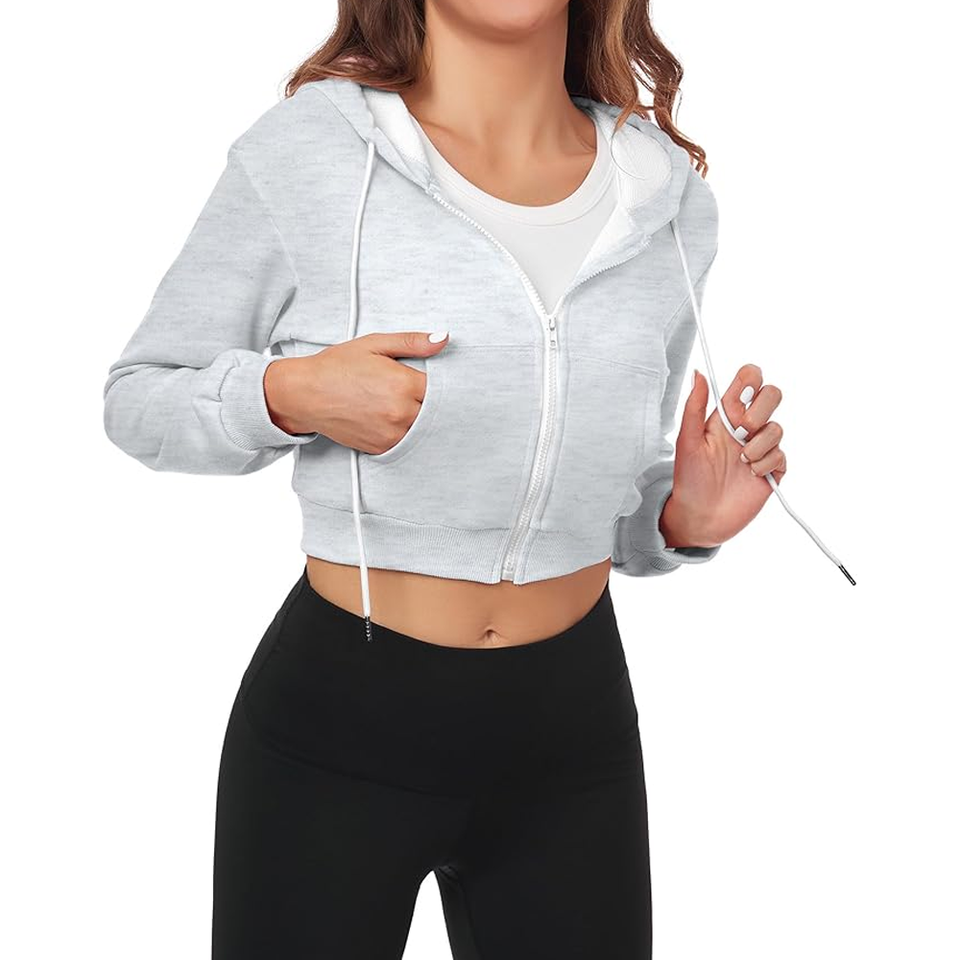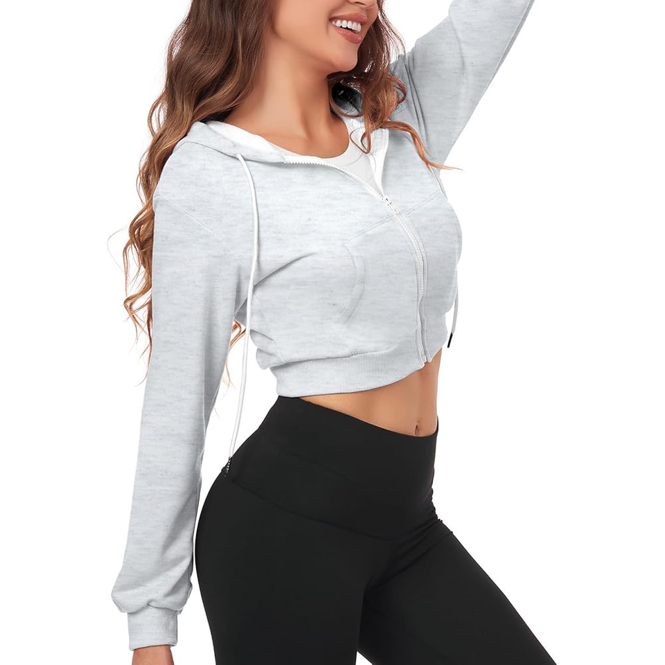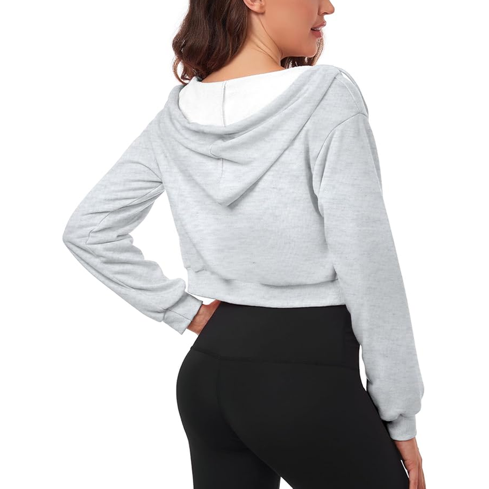 เสื้อครอปแบบสวมหัวคอมีฮู้ดโอเวอร์ไซส์เข้ารูปผ้าฝ้ายเกาหลีแขนยาว