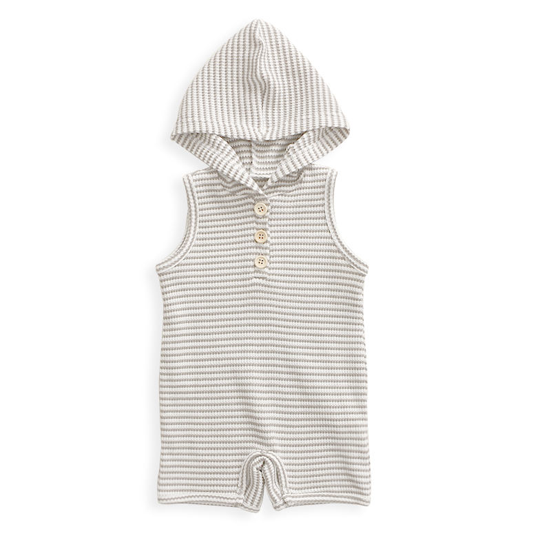 ชุดรอมเปอร์เด็กทารกแบบมีฮู้ด ผ้าริบเนื้อฝ้าย แขนกุด บอดี้สูทเด็กผู้ชาย จั๊มสูทเด็กผู้ชาย