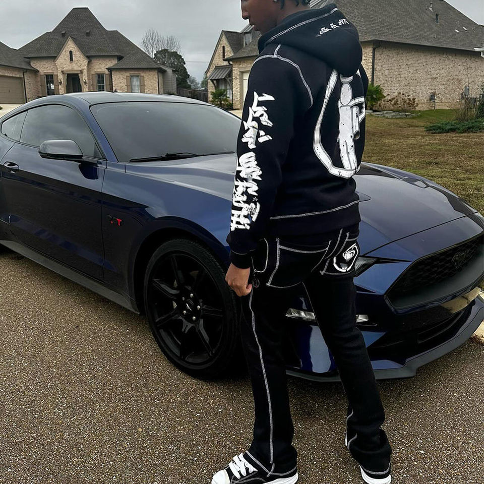 ชุดวอร์ม2ชิ้นสำหรับผู้ชายเสื้อสเวตเตอร์มีฮู้ดผ้าหนาระบายอากาศได้ดีมีโลโก้ออกแบบได้ตามต้องการสำหรับฤดูหนาว