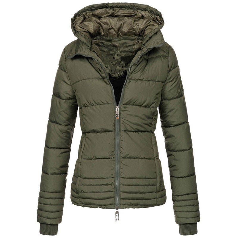 เสื้อกันหนาวมีฮู้ด,เสื้อโค้ทผู้หญิงโพลีเอสเตอร์รีไซเคิลผ้าทอไนลอนย้อมสีล้วนหนาเก็บความอบอุ่นไม่มีลวดลาย
