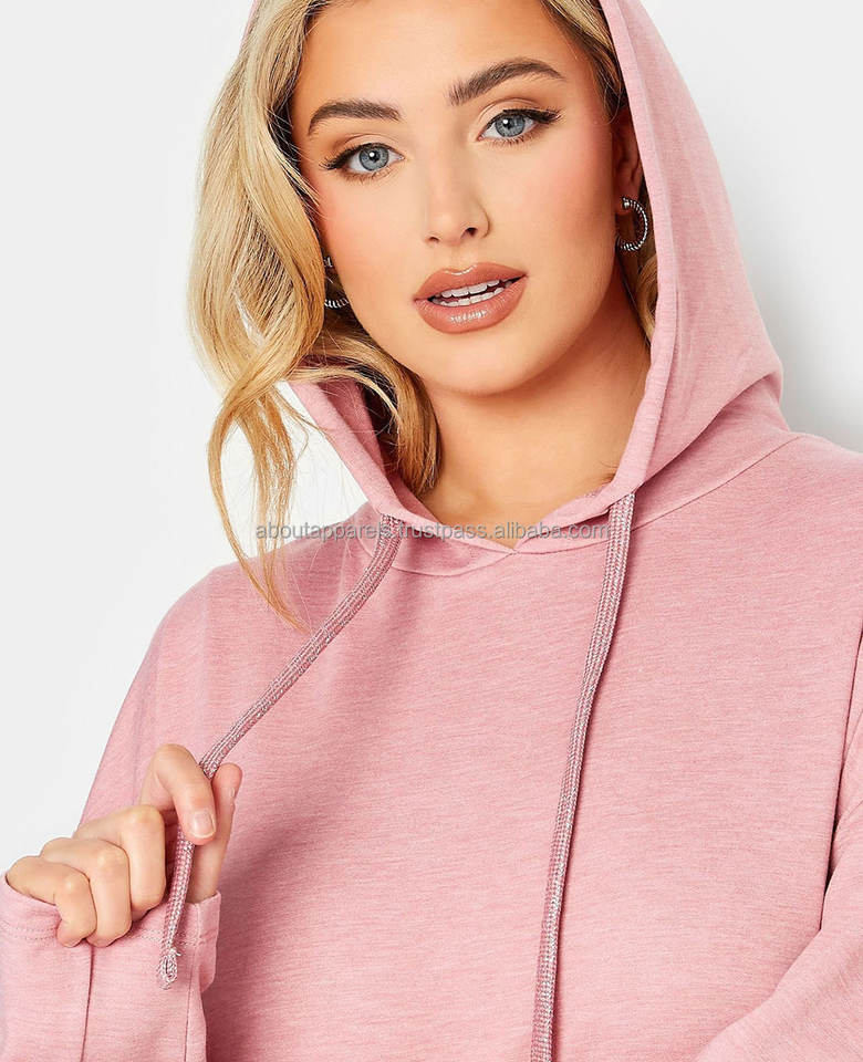 เสื้อฮู้ดผ้าโพลีเอสเตอร์สำหรับผู้หญิงเสื้อมีฮู้ดแบบสวมหัวเสื้อฮู้ดแบบธรรมดาเสื้อฮู้ดแบบลำลองสีพื้นสำหรับ100% โลโก้ออกแบบได้ตามต้องการ