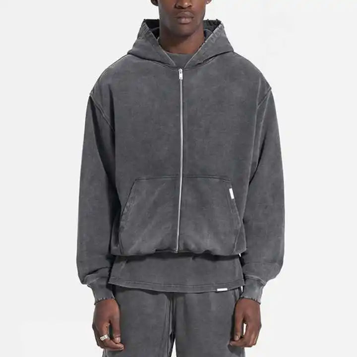 เสื้อมีฮู้ดผู้ชายสีดำเสื้อฮู้ดผ้าฟลีซแบบวินเทจ