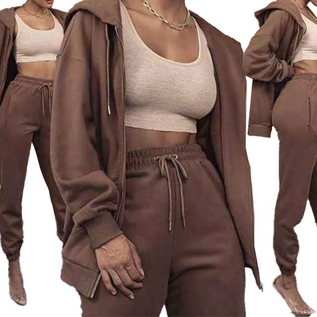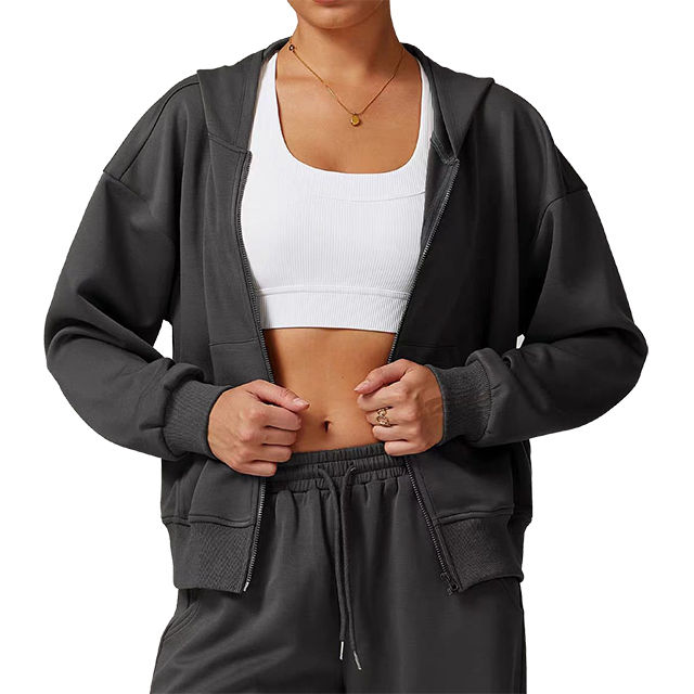 ชุดฮู้ดดี้ เสื้อผ้าสำหรับกิจกรรมกลางแจ้ง ชุด 2 ชิ้น สำหรับผู้หญิง เสื้อผ้าผู้หญิงใส่สบาย รับสกรีนโลโก้ ชุดบอดี้สูทผ้าเฟรนช์เทอร์รี่ ชุดวอร์ม 2 ชิ้น