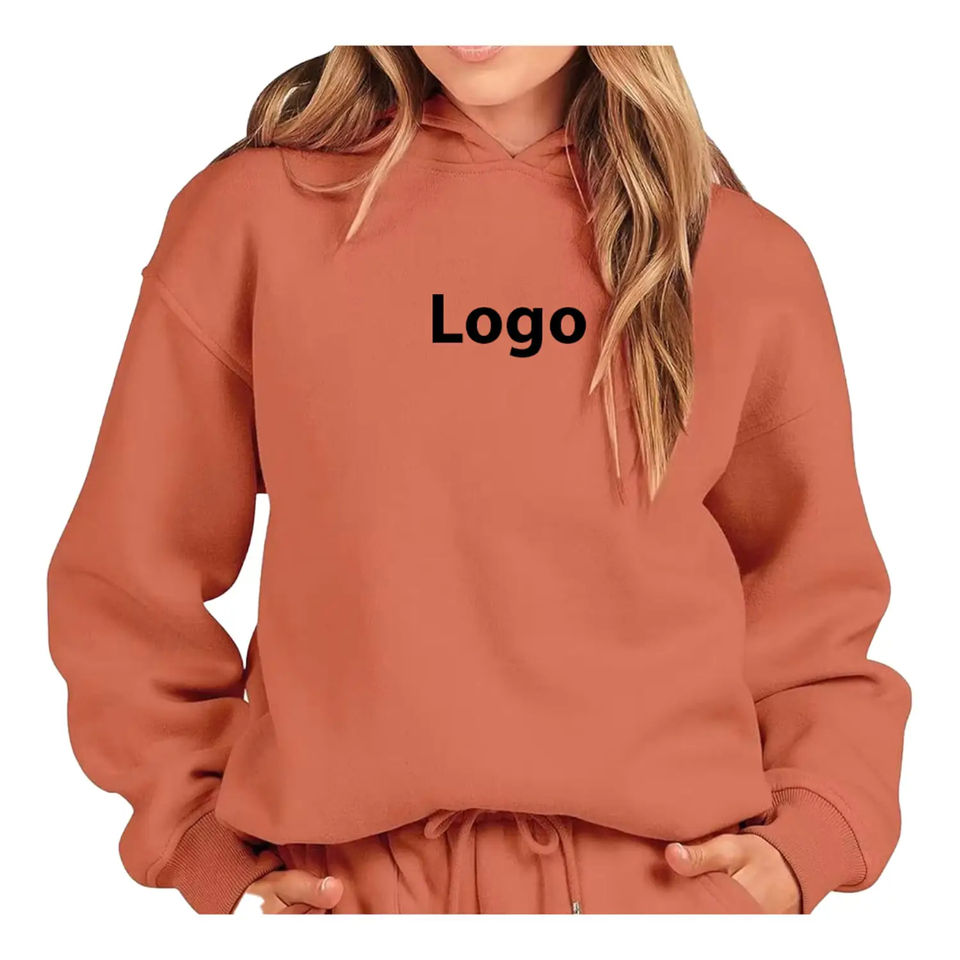 ชุดกางเกงขาสั้นมีฮู้ดสำหรับผู้หญิงชุดเสื้อผ้าแนวสตรีทผ้านุ่มใส่สบายปักลายพิมพ์โลโก้ได้ตามต้องการ