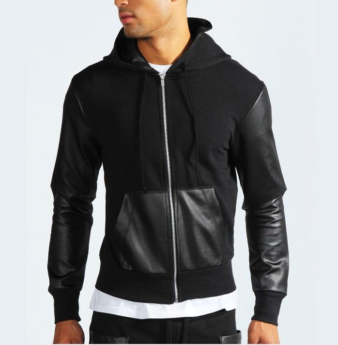 Men Leather Sleeves Hoodies