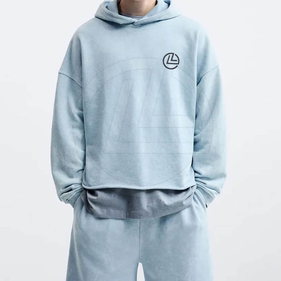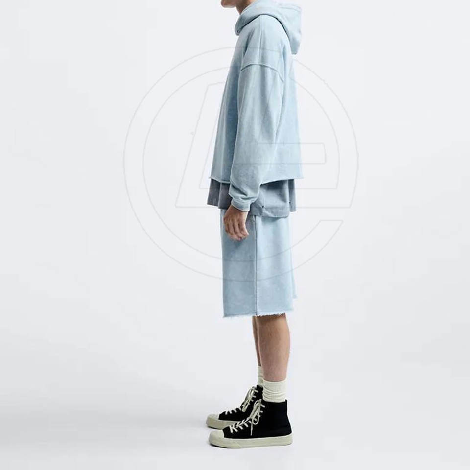 เสื้อฮู้ดดี้ฤดูหนาวเนื้อผ้าหนา ขอบดิบ แขนกว้าง แห้งเร็ว ระบายอากาศได้ดี ผลิตจากผ้าโพลีเอสเตอร์/คอตตอนฟลีซ สำหรับชุดลำลองทันสมัยสำหรับผู้ชาย