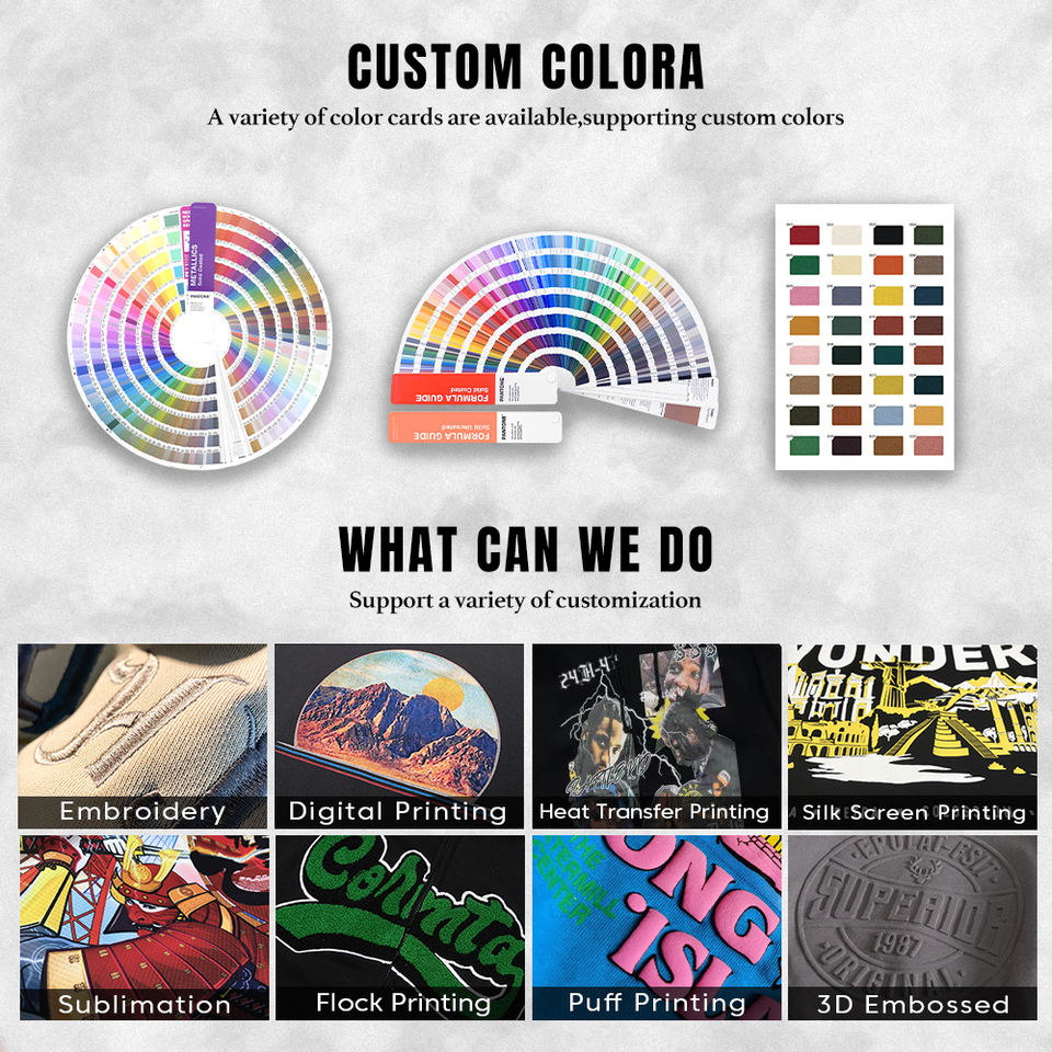 เทคนิค:ปัก, พิมพ์ลาย, ล้าง, ธรรมดาย้อม, มัดย้อม, Flocking, ปัก3D, Stonewashed