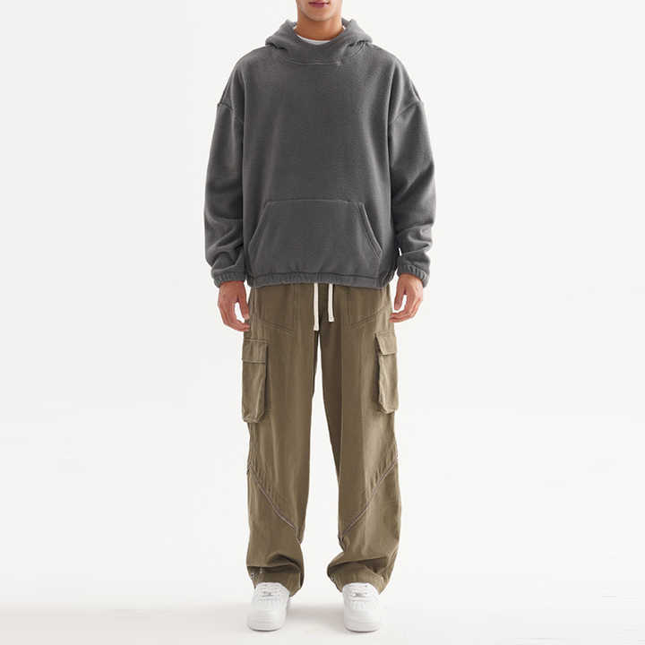 300GSM มีฮู้ดผ้าฟลีซขั้วโลกสำหรับผู้ชายผ้าฟลีซโพลีเอสเตอร์100% เสื้อมีฮู้ดกำหนดลายว่างเปล่าโอเวอร์ไซส์