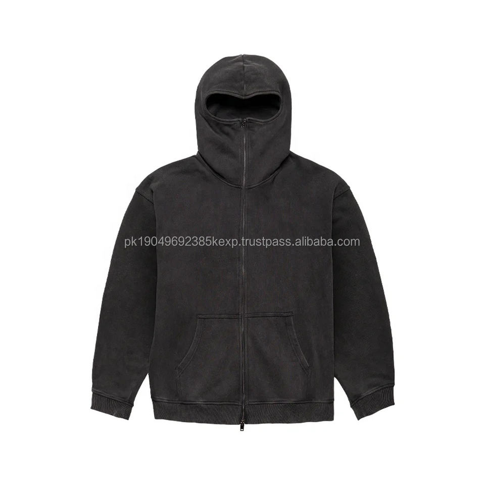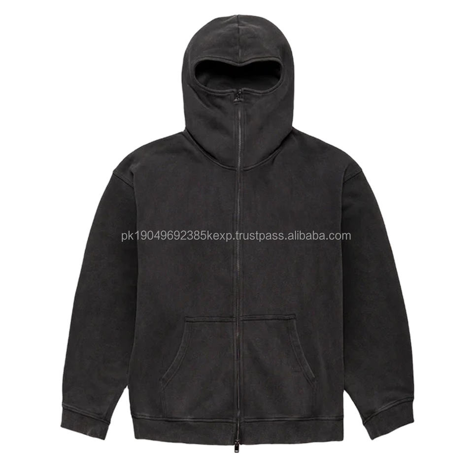 เสื้อฮู้ดดี้ผู้ชาย ผ้าฝ้าย 100% สกรีนลายตามสั่ง ซิปยาว ทรงวินเทจ ไหล่ตก ปิดหน้าเต็มใบแบบบาลาคลาวา