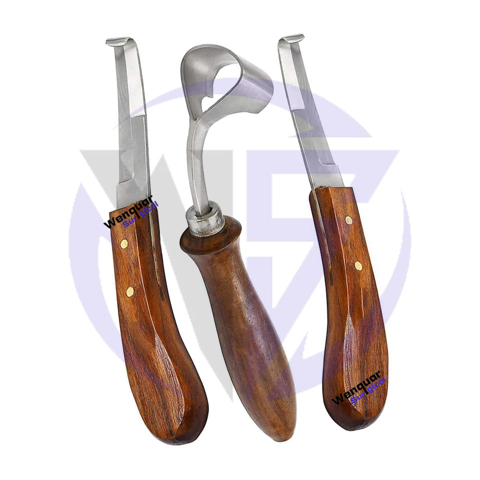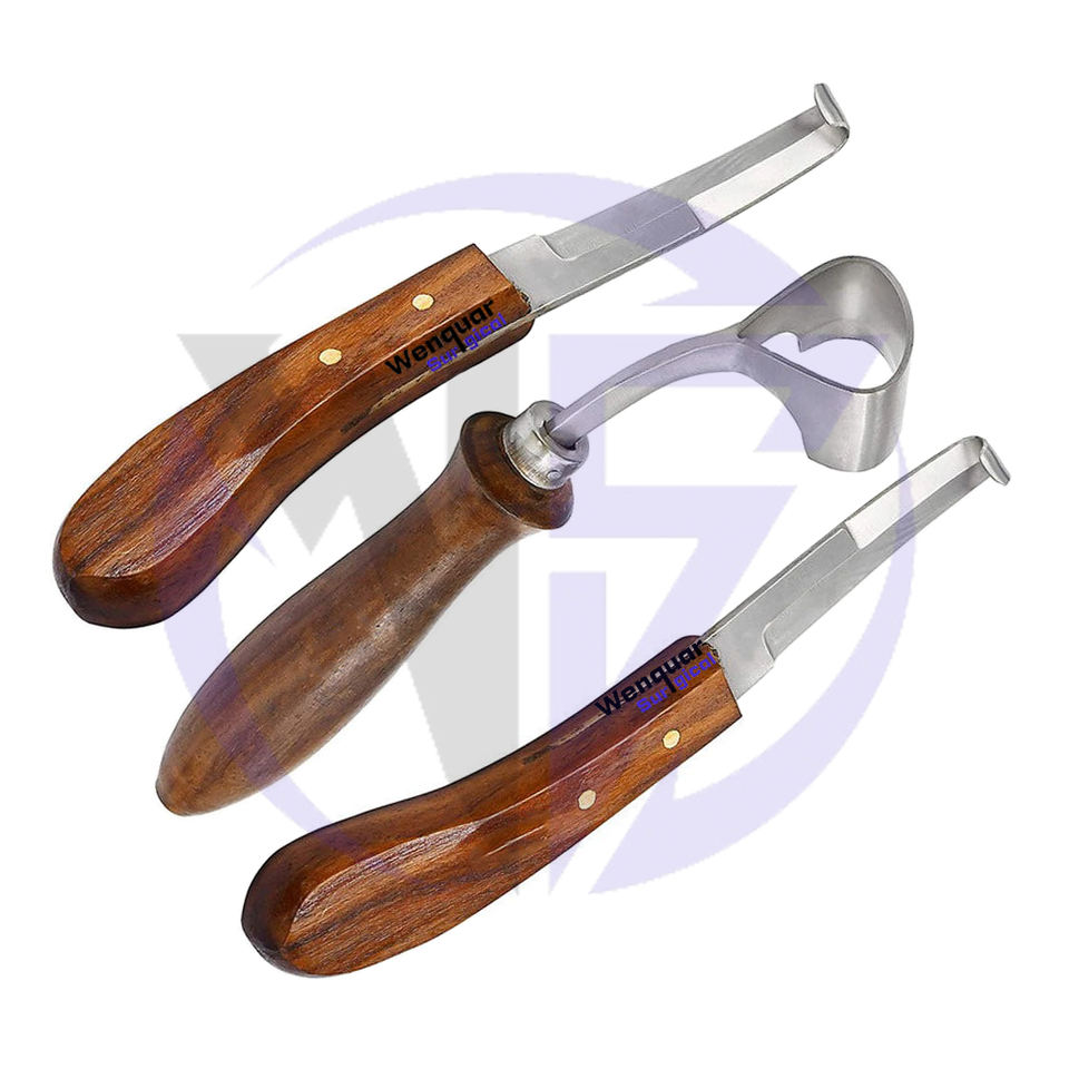 ชุดมีดกีบเครื่องมือ3ชิ้นมีดเหลาซ้ายขวาและมีดขอบคู่สำหรับม้าแพะด้ามไม้เครื่องมือ