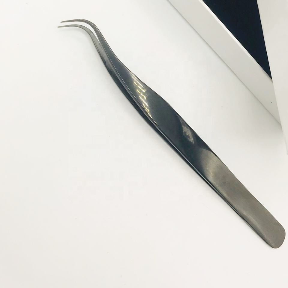 ชุดแหนบต่อขนตาสแตนเลสสีดำแบบใหม่ชุดแหนบแบบตะขอแหลมออกแบบฉลากส่วนตัว