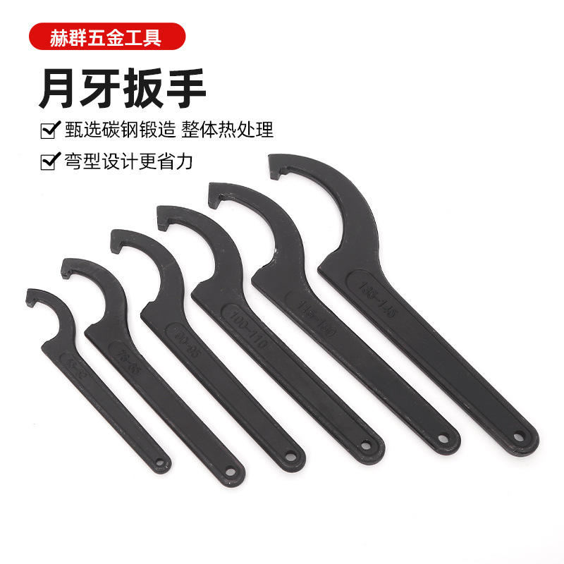 ชุดประแจเกี่ยวแบบมีด้ามจับ วัสดุเหล็กกล้าคาร์บอนสีดำ ปากเรียบ สำหรับปรับฝาครอบมิเตอร์น้ำ เครื่องมือปรับแต่ง DIY ประแจรูปพระจันทร์เสี้ยว