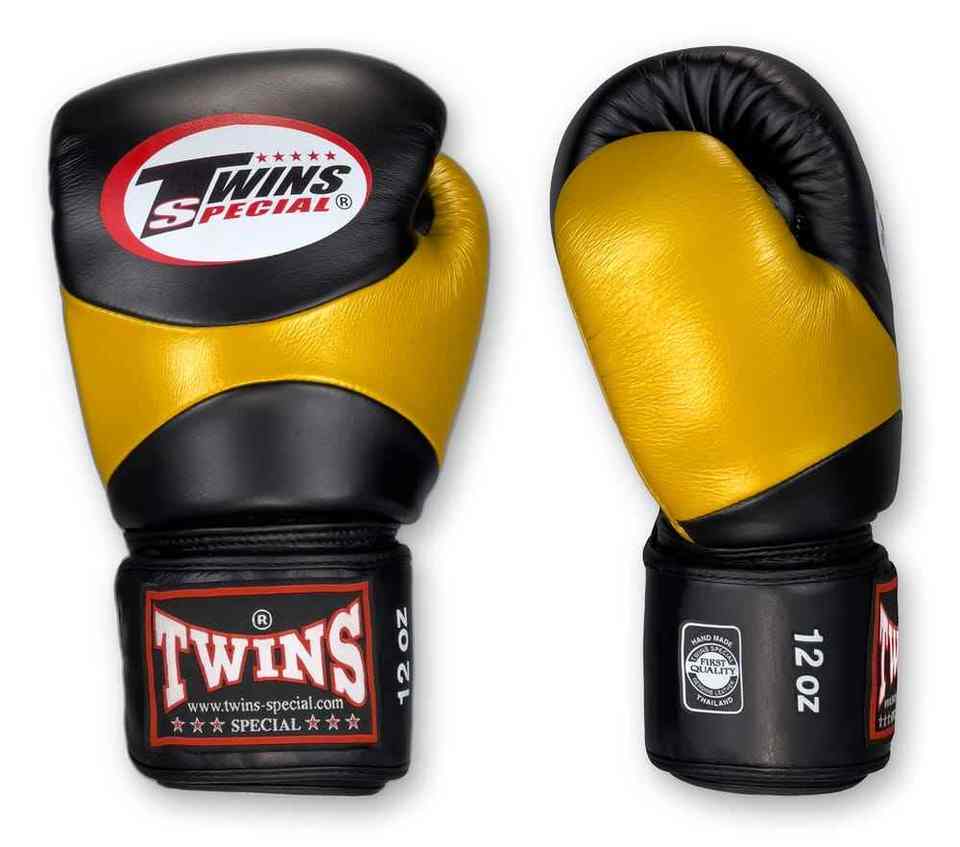 ถุงมือชกมวยสำหรับเด็กแบบมีห่วงและตะขอจับมือจับมือสำหรับฝึกหนังแท้สีดำทอง
