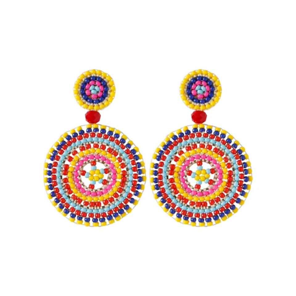 ต่างหูแบบห่วงประดับลูกปัด งานปักมือประดับด้วยลูกปัดแก้ว ดีไซน์โบฮีเมียนสุดอินเทรนด์สำหรับผู้หญิง ของขวัญสำหรับงานแต่งงานและวันหยุด