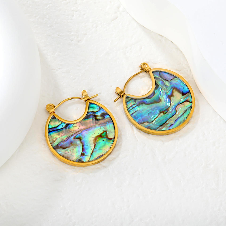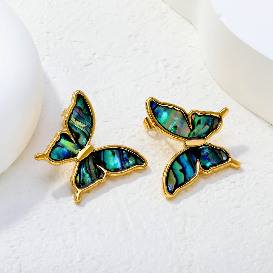 ต่างหูแบบห่วง เปลือกหอยอะบาโลน ต่างหูรูปผีเสื้อ ชุบทอง สแตนเลส เครื่องประดับแฟชั่นสำหรับงานปาร์ตี้ สไตล์ยุโรป