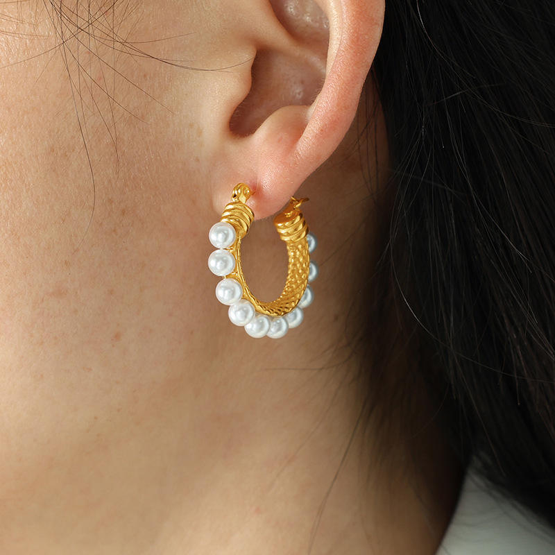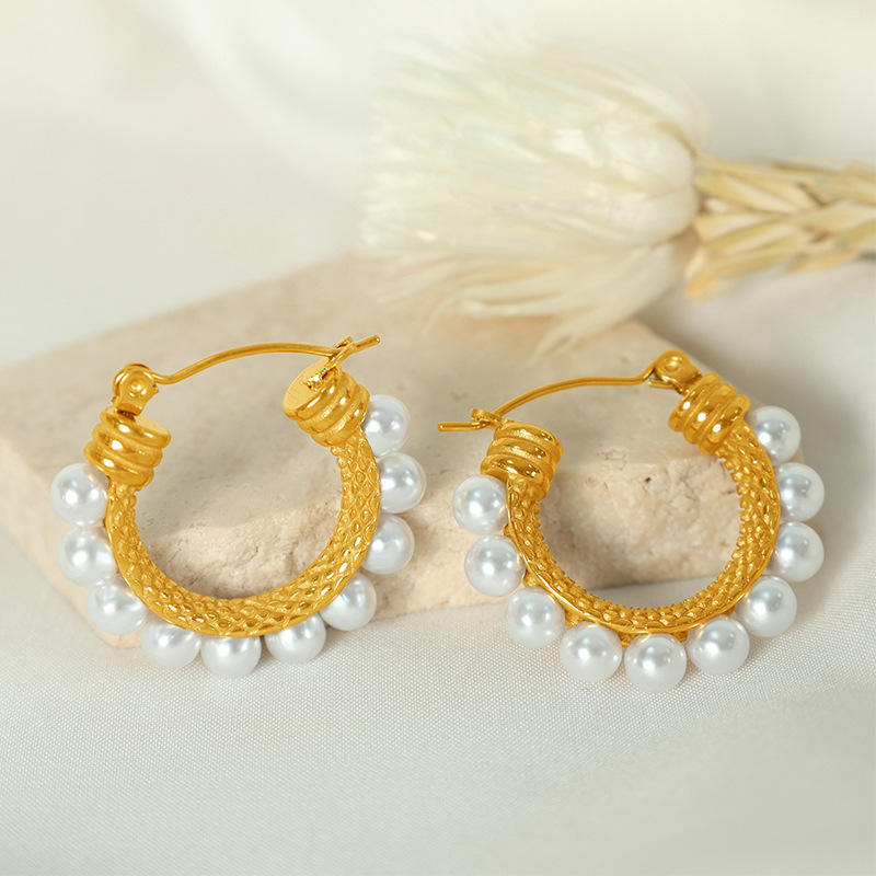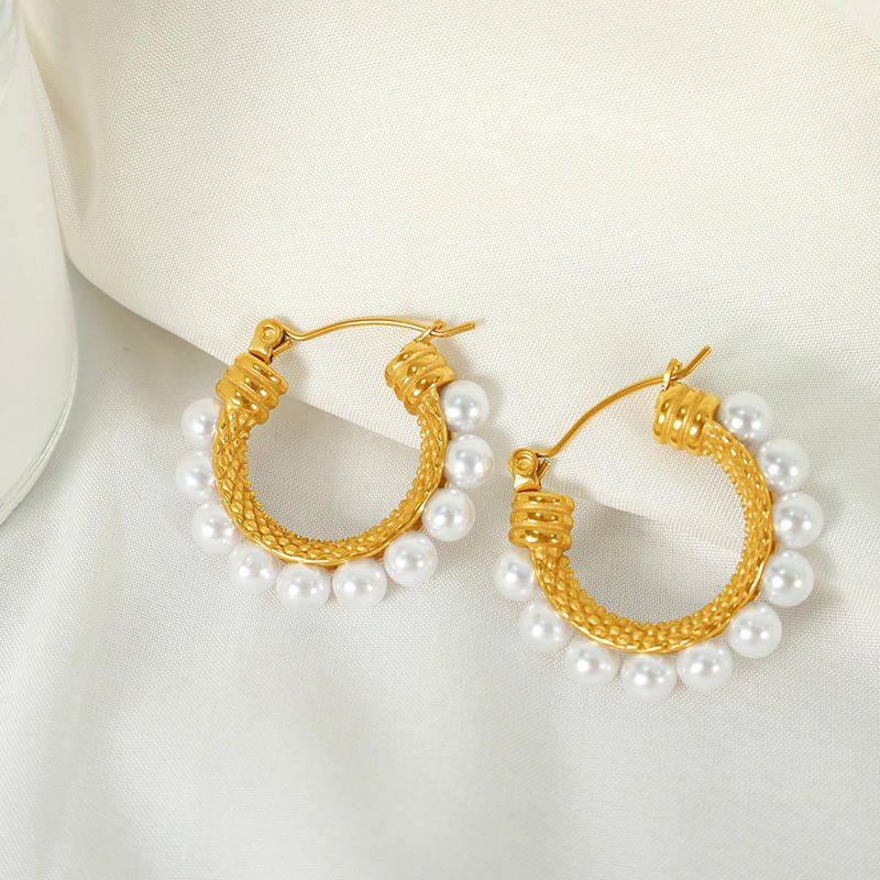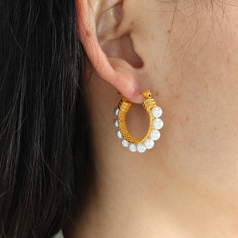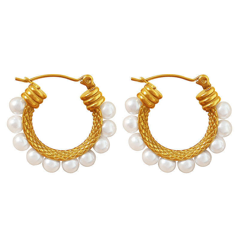 ต่างหูแบบห่วง ประดับลูกปัดทอง มุกเกรด AA ดีไซน์เรขาคณิต ใส่ได้ทุกวัน รุ่น EH141