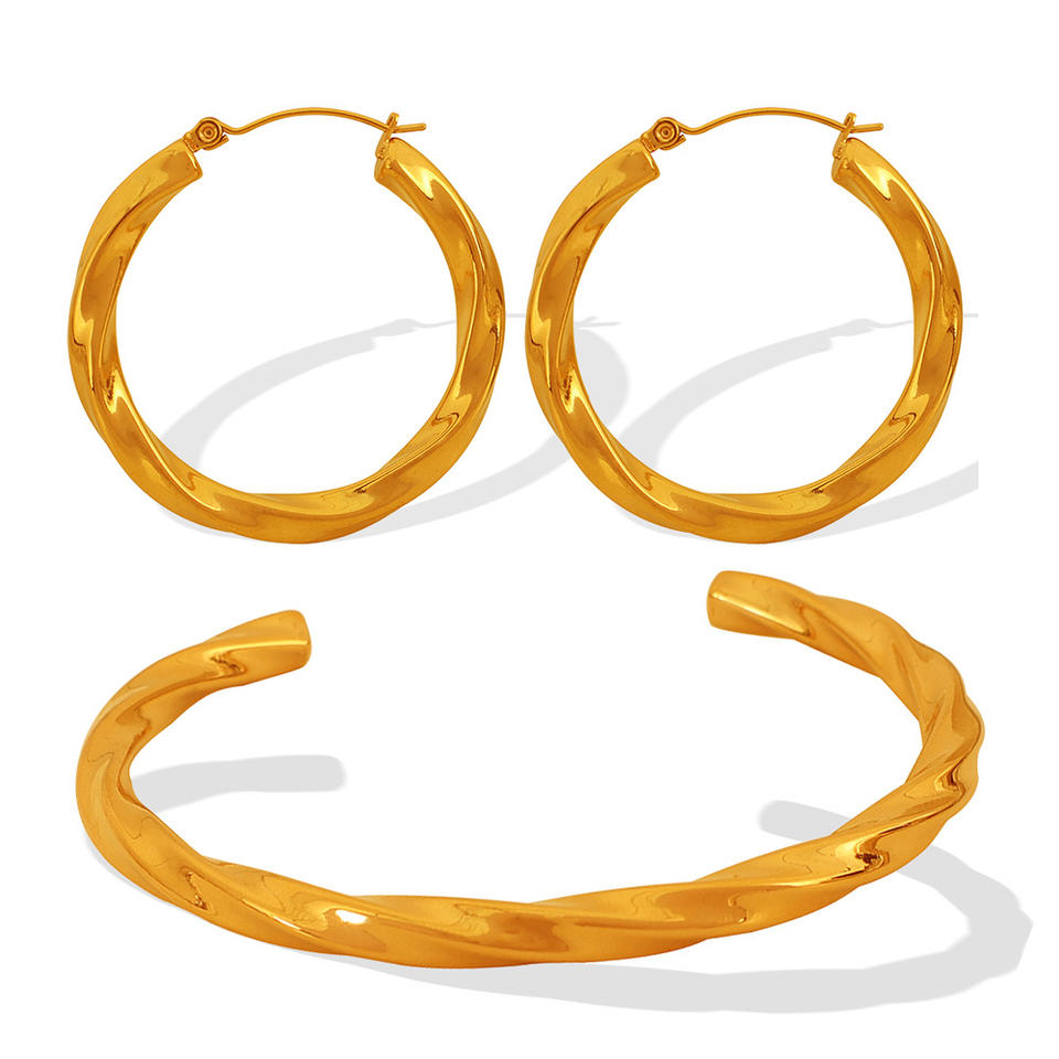 ต่างหูห่วงโลหะบิดเกลียว กำไลข้อมือเปิดโล่ง ไทเทเนียมสตีล แฟชั่นสำหรับผู้หญิง ชุดเครื่องประดับสำหรับงานปาร์ตี้
