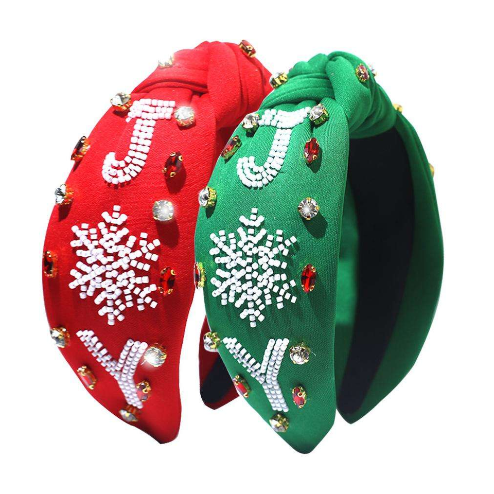 ห่วงคาดผมดีไซน์เกล็ดหิมะแบบกำหนดเอง ขอบกว้าง ขายตรง ปักลูกปัดแบบกำหนดเอง
