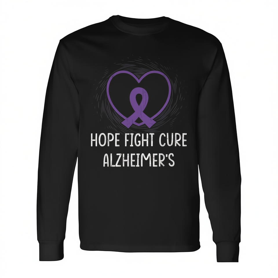 เสื้อยืดแขนยาวลายกราฟิกสีม่วงเพื่อสร้างความตระหนักรู้เกี่ยวกับโรคอัลไซเมอร์ "Hope Fight Cure"