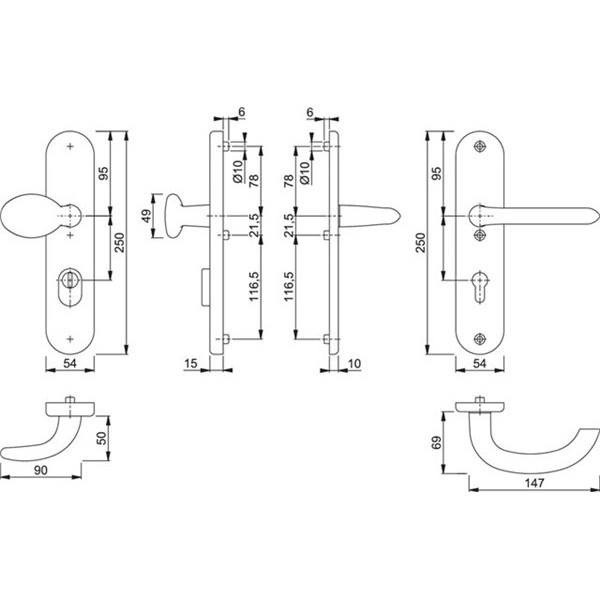 Hoppe ZT ชิ้นส่วนรู150/08 Bonn ที่จับประตูและหน้าต่างสินค้า
