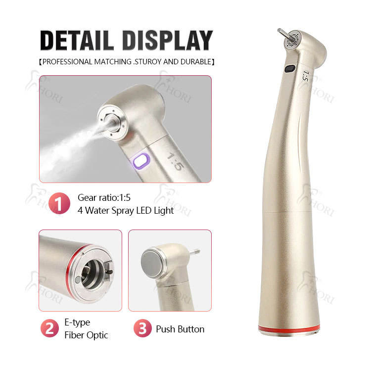 หัวกรอฟัน Hori อัตราทด 1:5 ไฟเบอร์ออปติก ไฟฟ้า ความเร็วสูง สแตนเลส สีเงิน
