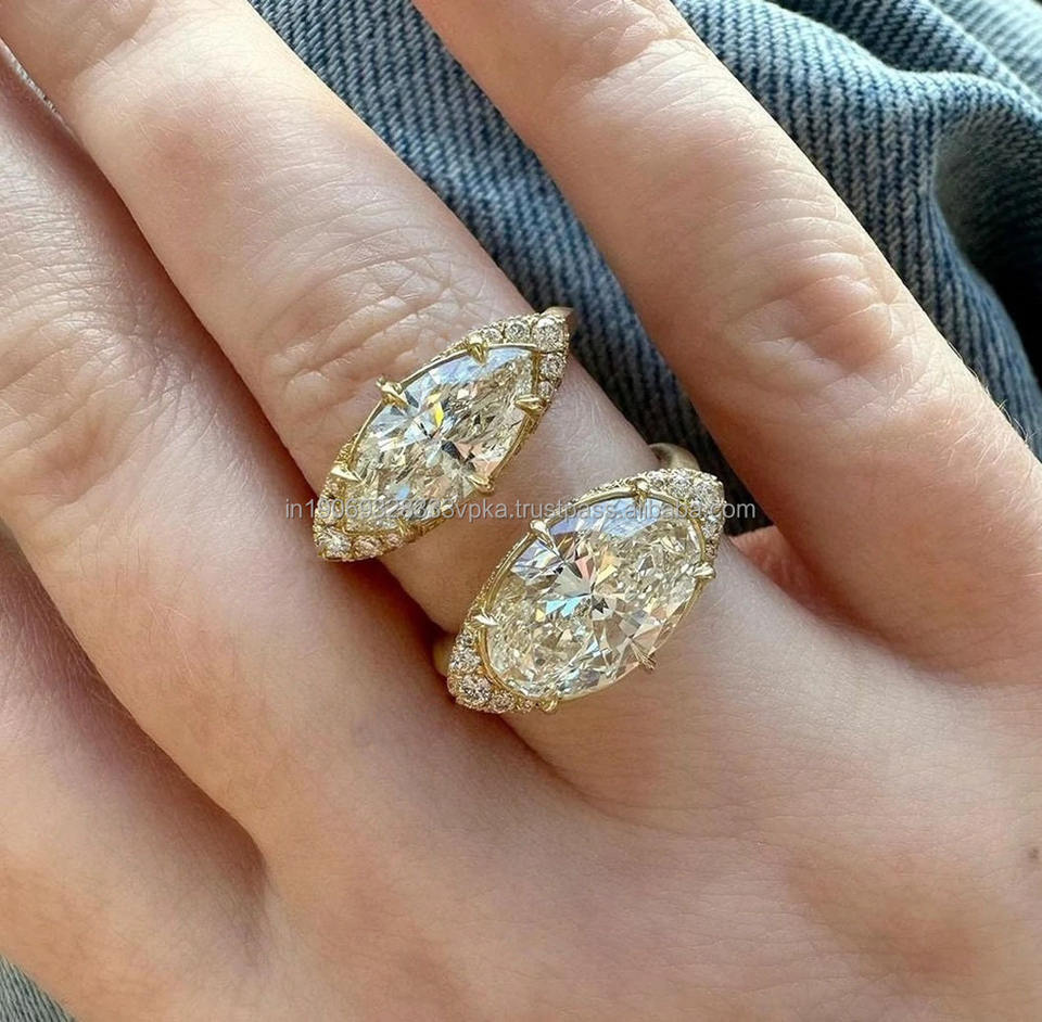 แหวนเพชรมอิสซาไนต์ทรงวงรีขนาด10x7มม. แนวนอนทรงแหลมตะกร้าทรงวินเทจประดับหินจากตะวันออกไปตะวันตก