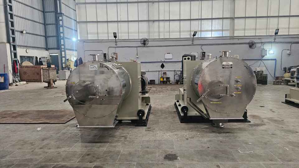 เครื่องปั่นเหวี่ยงแบบดันแนวนอน SS 2205 สแตนเลสสตีล 25 แรงม้า 220 โวลต์ 100-1000 กก./ชม. สำหรับแยกสารเคมีเกลือ